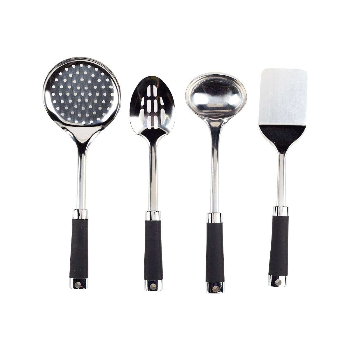 Home Home & Kitchen Chef Delicious Stainless Steel 4-Piece Utensil Set – Skimmer – Slotted Turner – Solid Spoon – Ladle