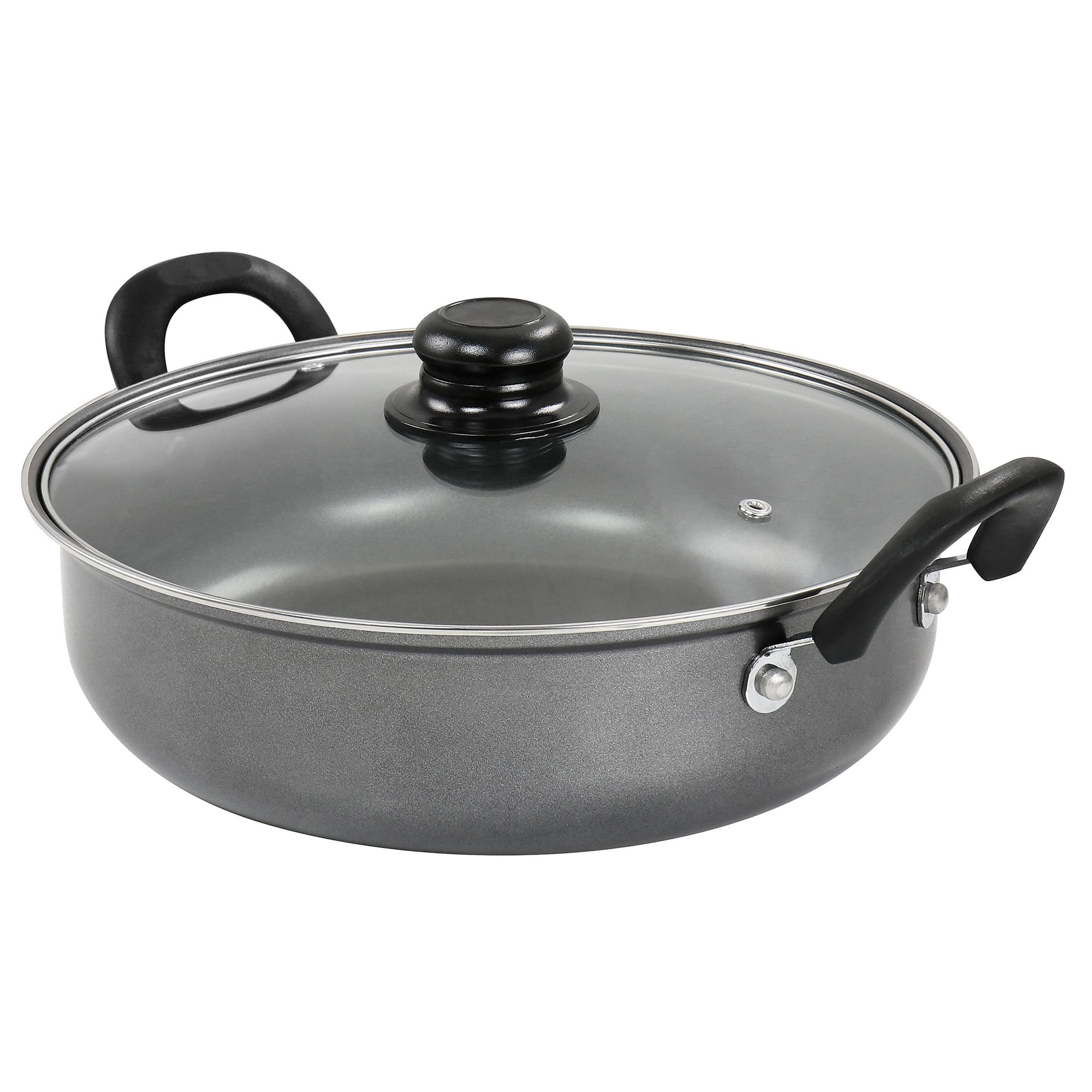 Gibson Everyday Highberry Non Stick Steel All Purpose Frying Pan with Lid, 12-inch Length, Charcoal, Kitchen Cooking Accessories, 127790.02