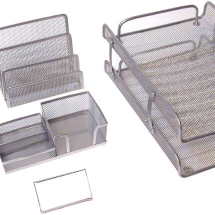 Majestic Goods Office Supply Mesh Desk Set, Silver 5 Piece (XQ767S)
